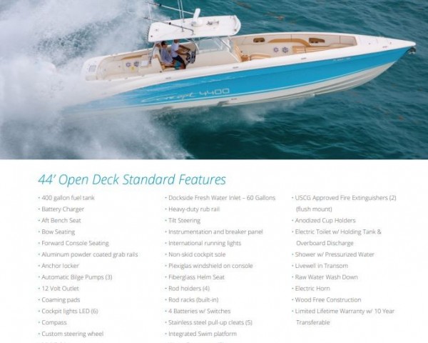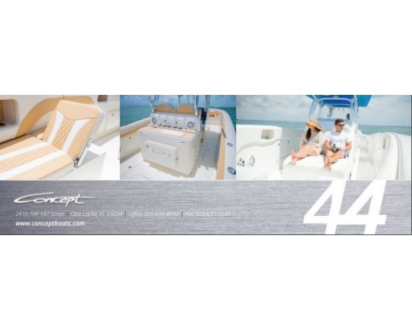 2026 Concept 44' CC(4) Mercury 400s Great fishing vessle and very affordableExpress Your StyleFor added comfort, a bathroom and small bed can be found beneath the console along with a well-appointed galley. Equip your boat with a generator, flat screen TV, sound system, lighting and more. Create the custom look you want with sun deck cushions and lounge seating on deck, and your choice of wood grain flooring or carpeting in the cabin.When it comes to power choose from triple or quad 350 hp outboards, or go big with twin or triple Seven Marine 600+ hphigh-performance motors. |